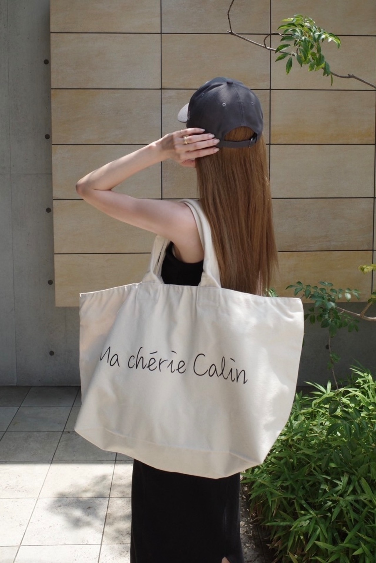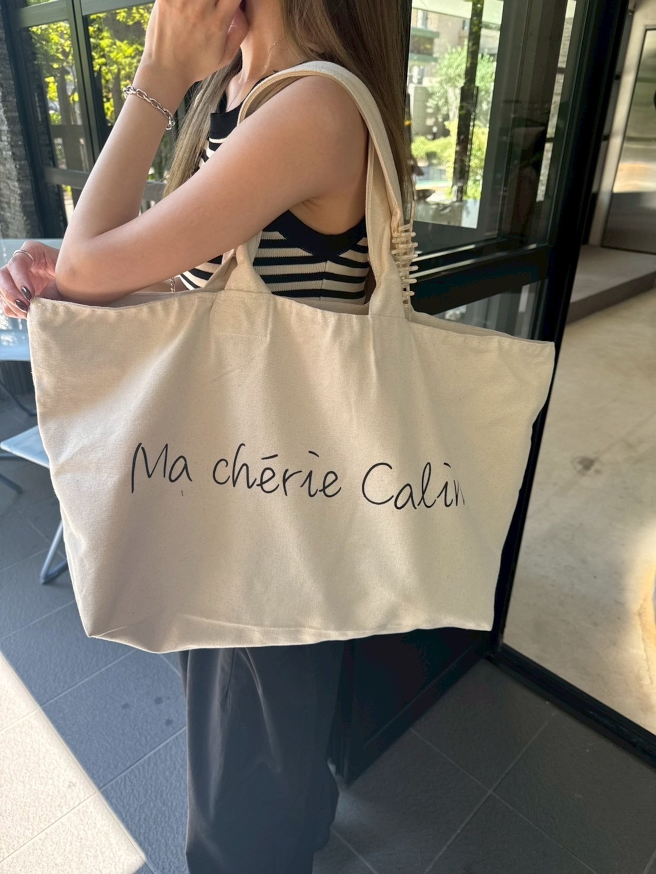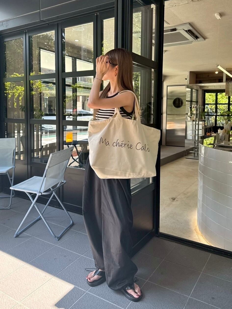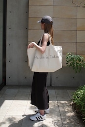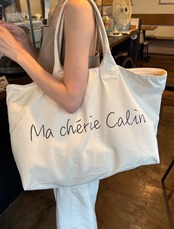 シンプルで手書き風フォントが目を惹く「Ma chérie Calin」の大容量トートバッグ。